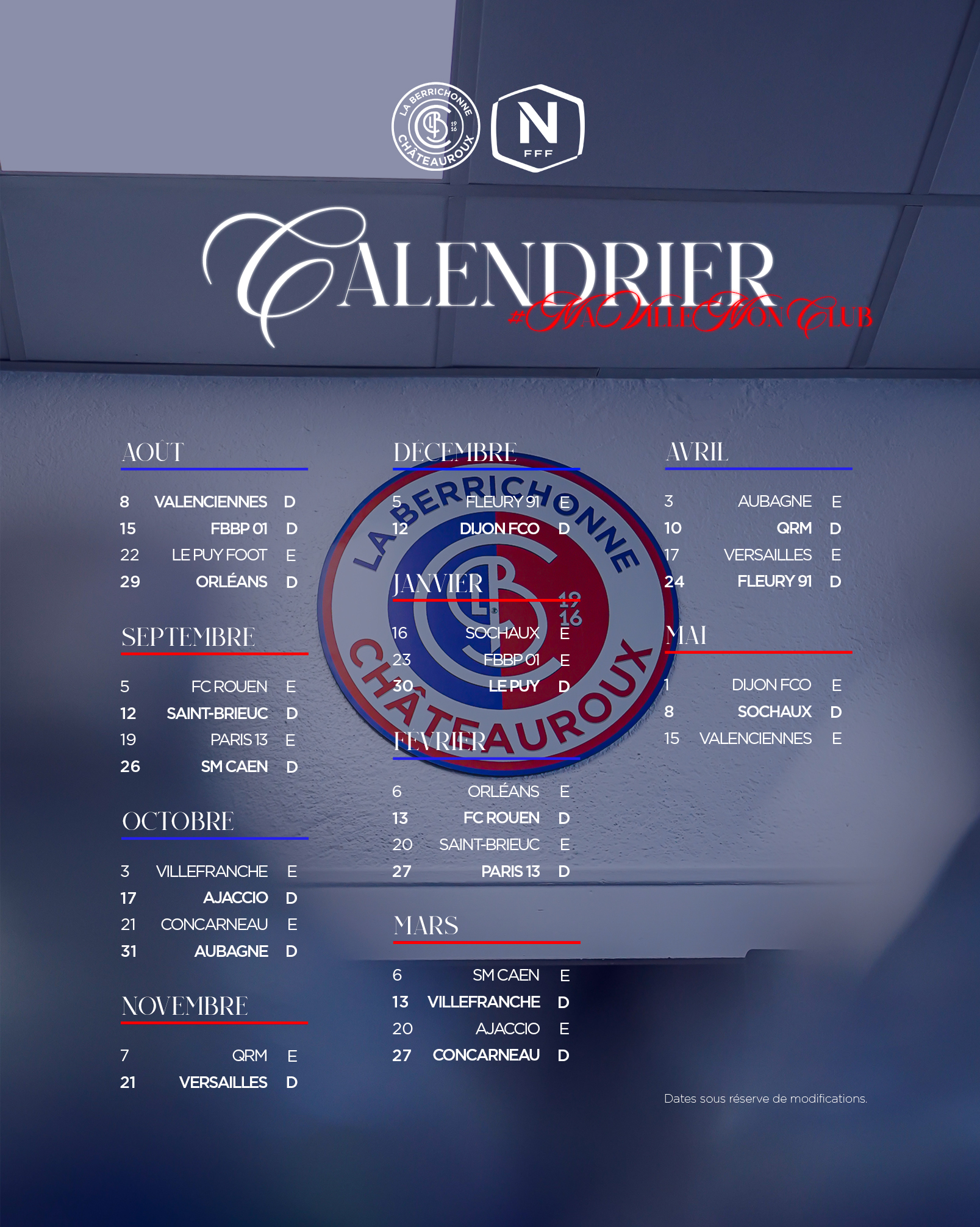 Retrouvez notre calendrier des matchs
