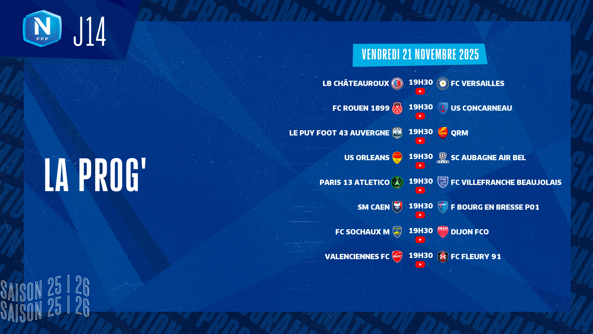 La rencontre sera à suivre en direct à partir de 19h15 sur notre site et sur la chaîne YouTube du Championnat de National en cliquant ici.