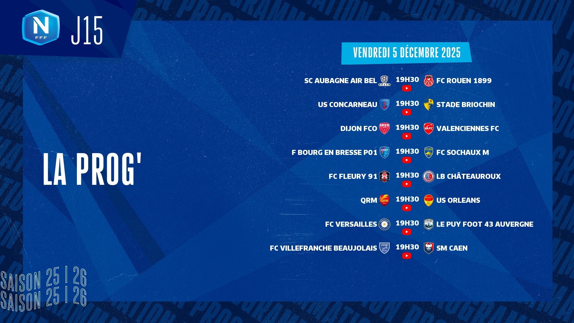 La rencontre sera à suivre en direct à partir de 19h15 sur notre site et sur la chaîne YouTube du Championnat de National en cliquant ici.