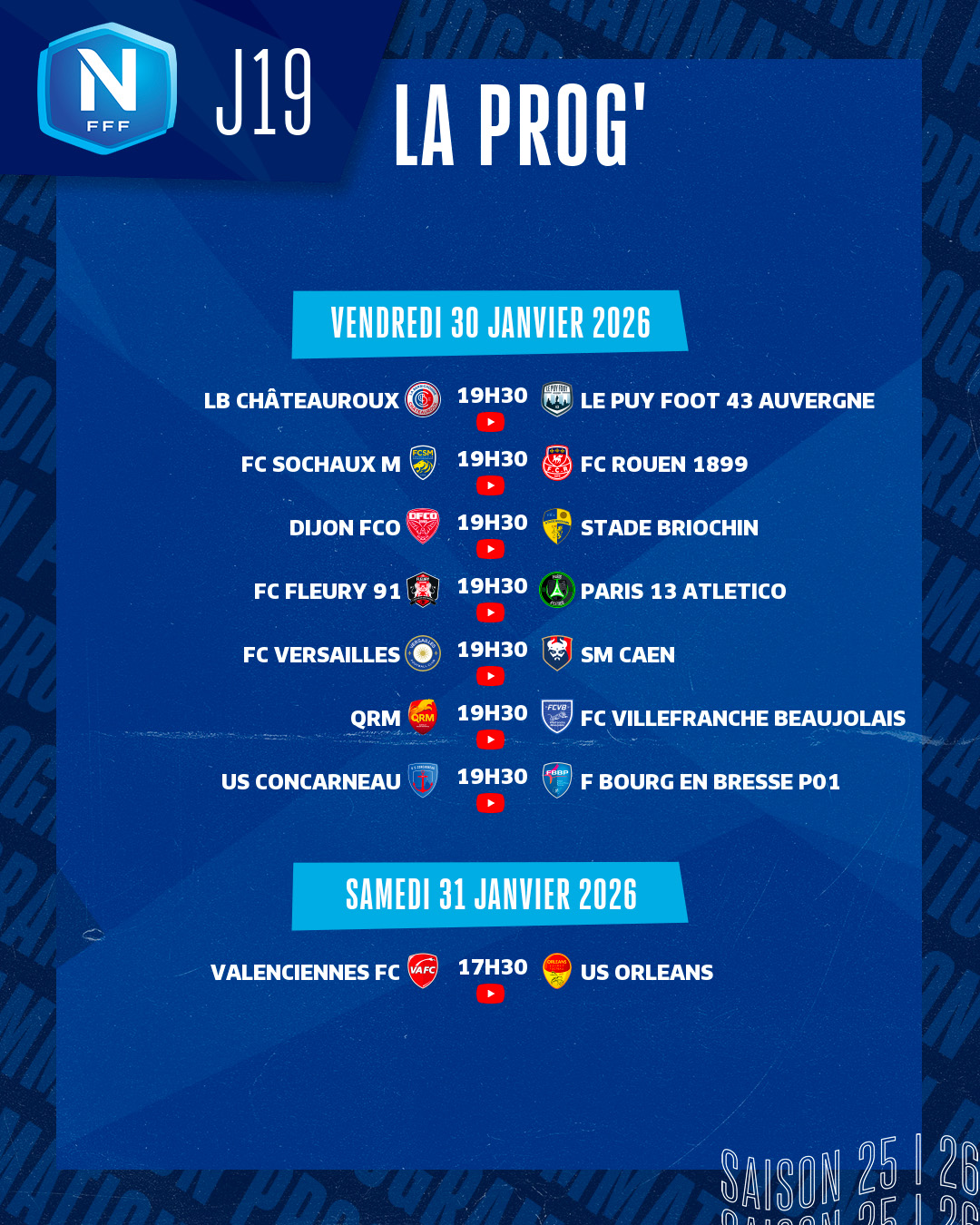 La rencontre sera à suivre en direct à partir de 19h15 sur notre site et sur la chaîne YouTube du Championnat de National en cliquant ici.