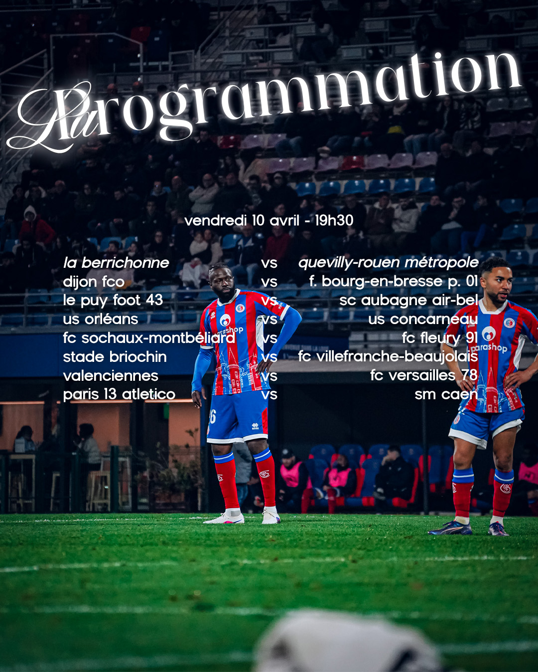 Vendredi 10 avril 2026, 19h30, Stade Gaston Petit.