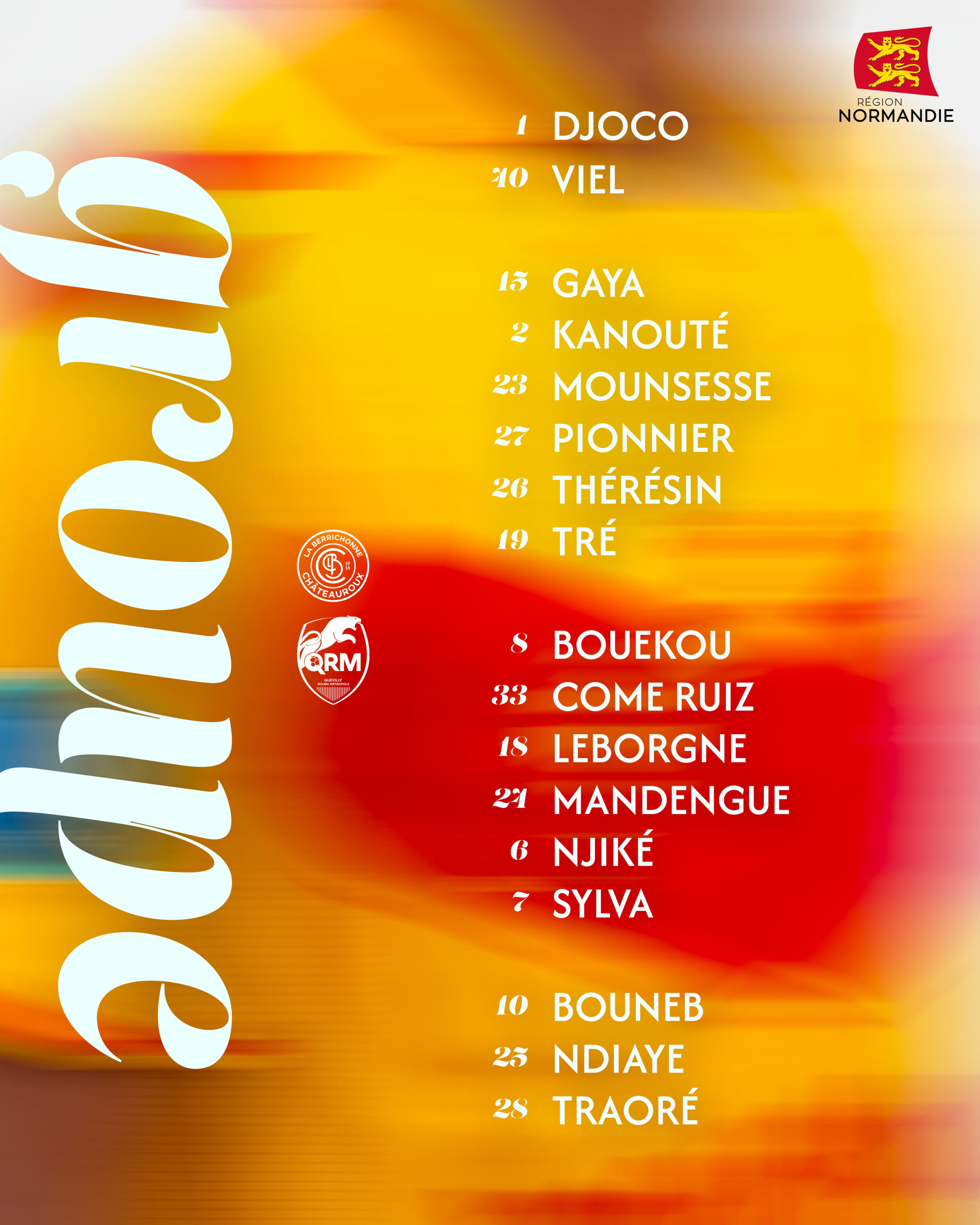 Djoco - Tré, Mounsesse, Thérésin, Dede-L'Homme - Njiké (C), Leborgne - Sylva, Bouneb, Mandengue - Traoré.