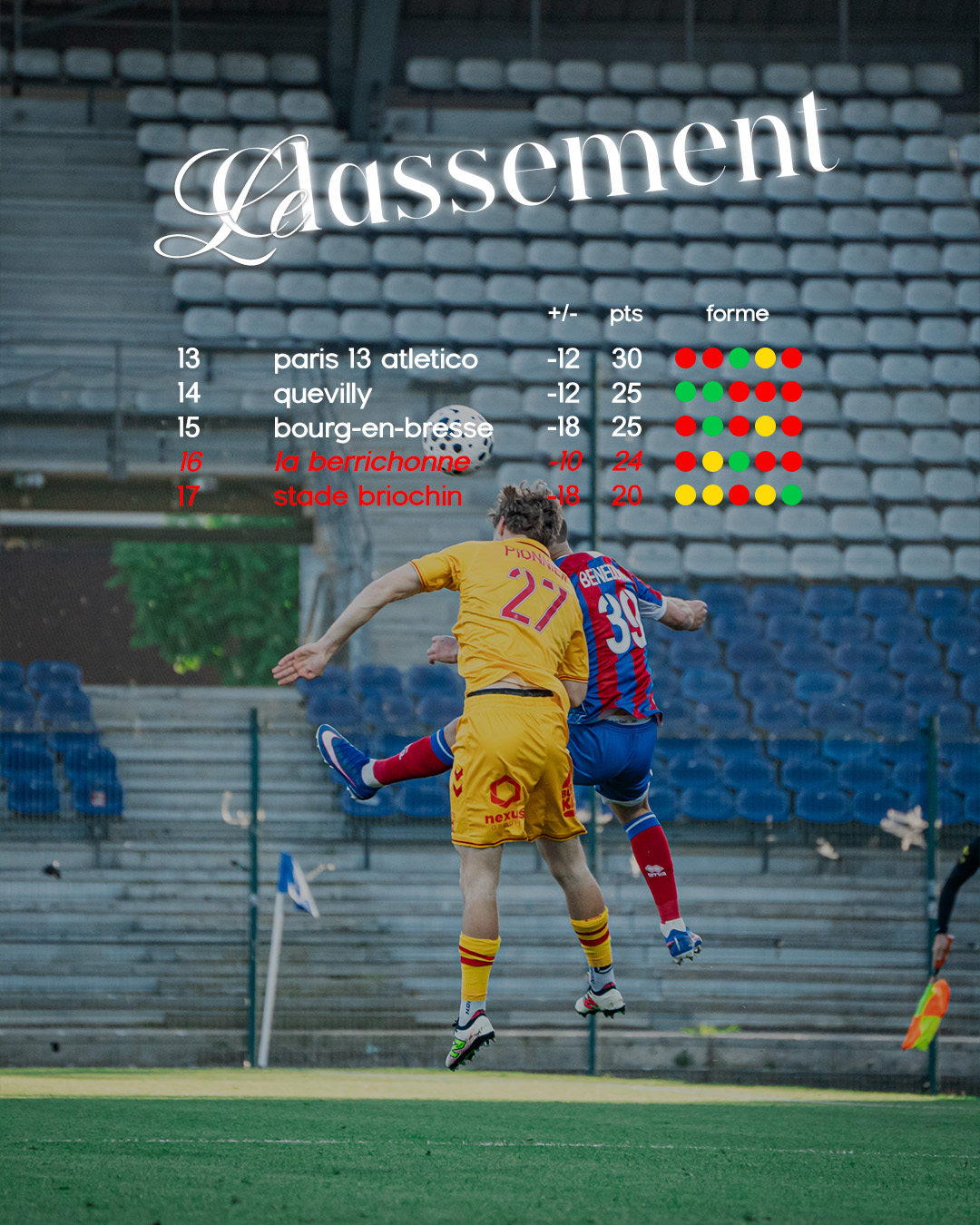 défaites à l'extérieur pour La Berri' qui se place juste derière Dijon et Rouen.