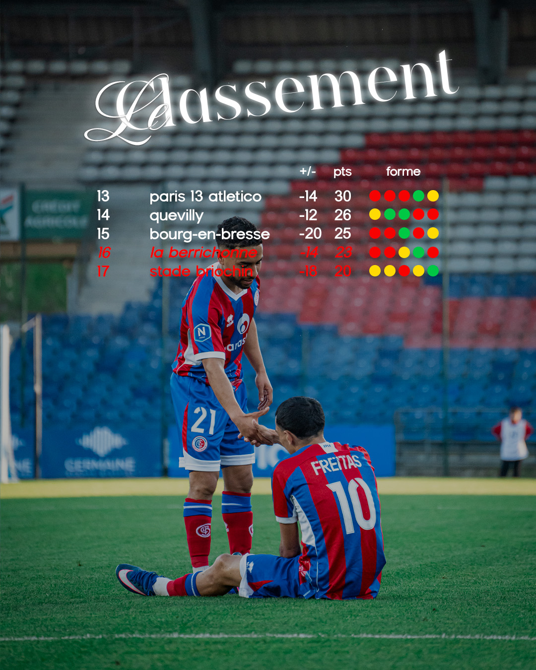 points de retard sur Bourg-en-Bresse qui sera exempt lors d ela 34ème et dernière journée de championnat.