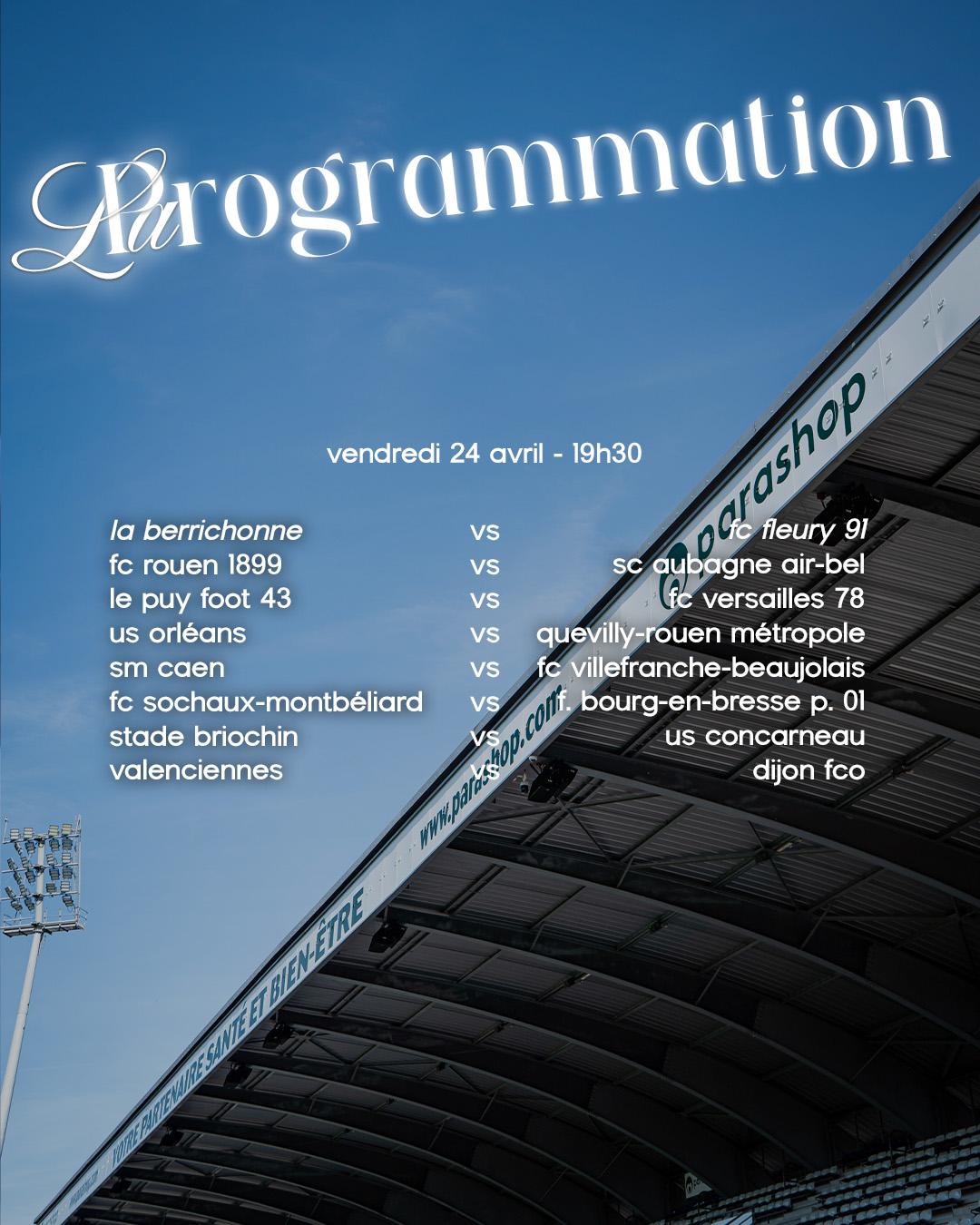 Vendredi 24 avril 2026, 19h30, Stade Gaston Petit.