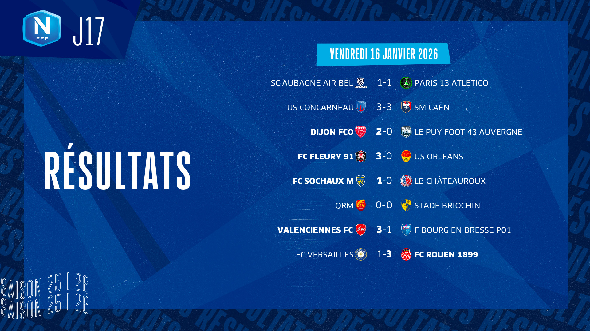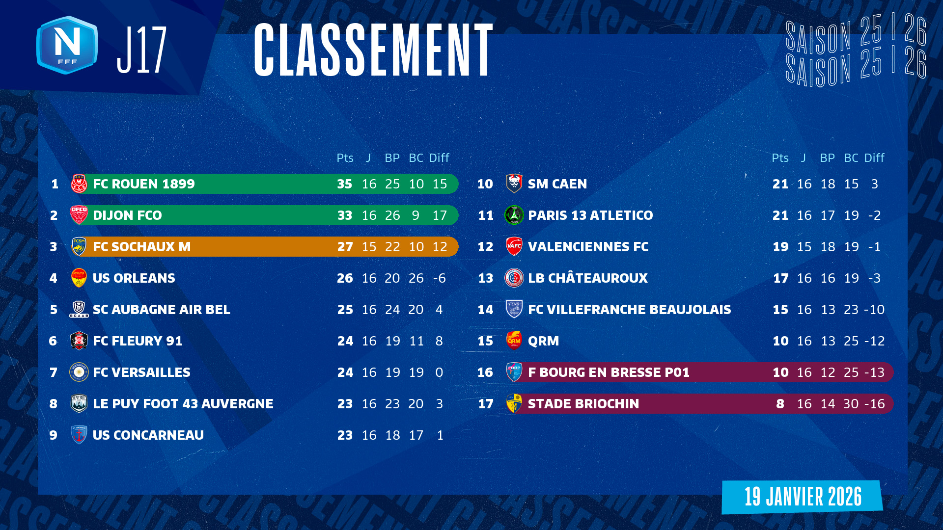 Vendredi 23 janvier 2026, 19h30, Stade Marcel Verchère.